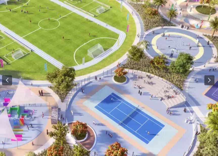 The development has curated an exceptional range of family amenities that set a new standard in the region. Residents can brighten their day at the Town Centre, a hub of indoor and outdoor dining experiences, handpicked retail stores, and bustling markets. For those seeking an active lifestyle, the Sports Village is the perfect place to work out and stay fit.